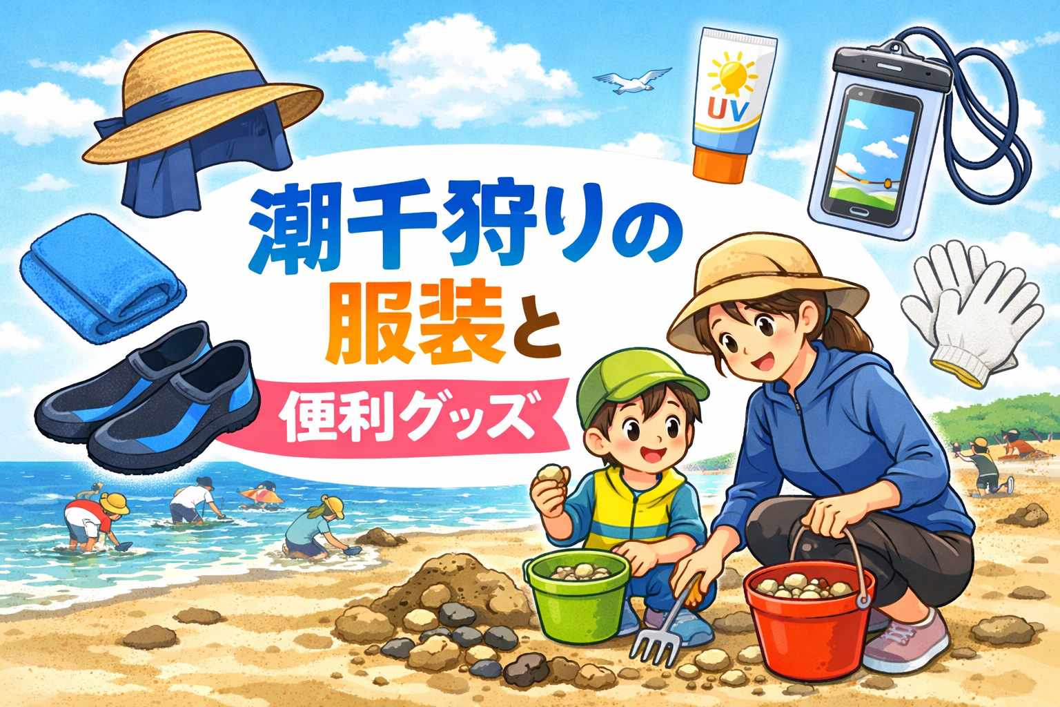 この記事では、潮干狩りに向いている服装と、あると便利なアイテムをわかりやすくまとめます。