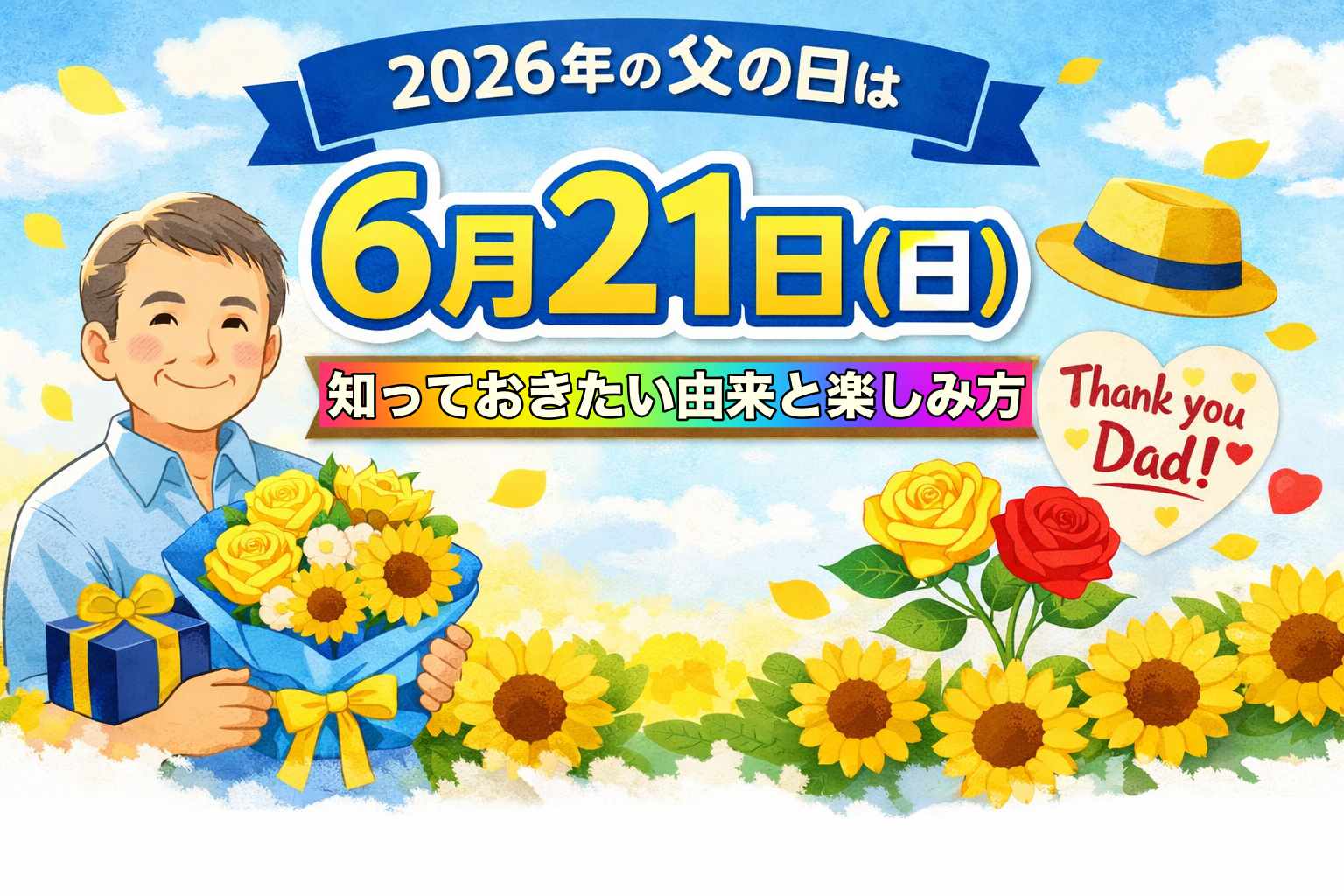 さらに、由来まで知っておくと、ただ贈り物をするだけでなく、お父さんへの感謝をより自然な形で伝えやすくなります。2026年の父の日は6月21日の日曜日です。父の日は毎年6月の第3日曜日とされているため、年によって日にちは変わります。