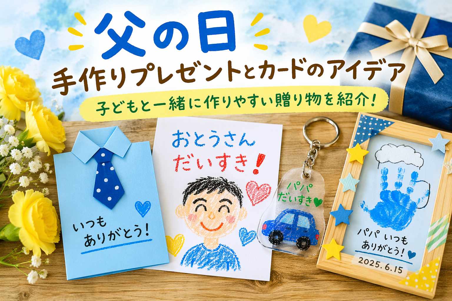 この記事では、父の日の手作りプレゼントや手作りカード、工作、DIY、100均アイデアを中心に、子どもと一緒に作りやすく、贈りやすいアイデアを分かりやすく紹介します。