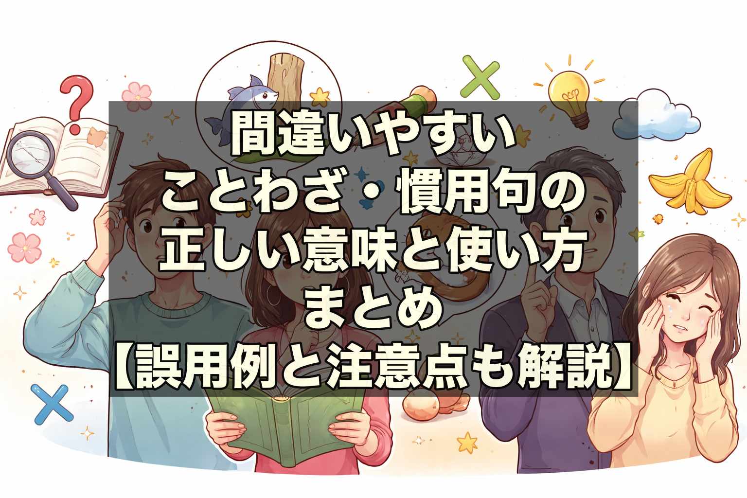 ことわざや慣用句、四字熟語は、短い言葉で状況や感情を的確に伝えられる便利な表現です。しかし、意味を正確に理解しないまま使ってしまうと、意図とは違う受け取られ方をしたり、文章や会話の信頼感を下げてしまうことがあります。特にSNSやビジネスシーンでは、言葉の使い方ひとつで「知的」「雑」「失礼」といった印象が大きく変わります。実は、多くの人が「知っているつもり」で誤用している言葉は少なくありません。この記事では、日常や文章で使われがちな間違いやすいことわざ・格言・慣用句を取り上げ、本来の意味や正しい使い方、注意点を分かりやすく解説します。言葉の理解を一段深めることで、伝わる表現力を身につけていきましょう。