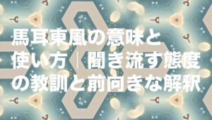 「馬耳東風(ばじとうふう)」とは、人の意見や忠告を聞いても全く心に留めず、聞き流してしまうことを意味することわざです。東から吹いてくる風が馬の耳を通り抜けても、何の影響も与えない様子にたとえており、「馬の耳に風」「馬の耳に念仏」とほぼ同じ意味で使われます。