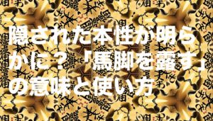 「馬脚を露す(ばきゃくをあらわす)」とは、隠していた正体や欠点、うそやごまかしが思わぬきっかけで表に出てしまうことを意味することわざです。うまく取り繕っていたつもりでも、油断した瞬間に本性が現れる様子を表します。