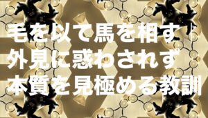 「毛を以て馬を相す(けをもってうまをそうす)」とは、物事の本質を見ず、表面上の一部分だけで全体を判断してしまうことの危うさを戒めたことわざです。馬の良し悪しを見極めるには体格や筋肉、気性など総合的な判断が必要なのに、毛並みだけで判断するのは的外れだ、というたとえから生まれました。