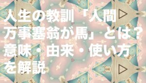 「人間万事塞翁が馬(にんげんばんじ さいおうがうま)」とは、人生の出来事は一見すると幸運や不運に見えても、その結果がどう転ぶかは分からないという意味のことわざです。良いことが悪い結果につながることもあれば、悪いことが後に幸運をもたらすこともある、という人生観を表しています。