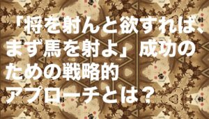 「将を射んと欲すれば、まず馬を射よ(しょうをいんとほっすれば まずうまをいよ)」とは、大きな目的を達成したいなら、いきなり中心人物や本丸を狙うのではなく、まずは周辺や基盤となる部分から攻めるべきだという意味のことわざです。