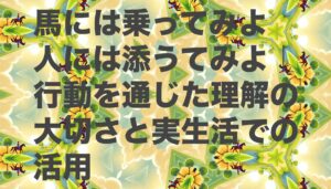 「馬には乗ってみよ人には添うてみよ(うまにはのってみよ ひとにはそうてみよ)」とは、物事や人の良し悪しは、実際に体験してみなければ本当のところは分からないという教えを表したことわざです。見た目や評判だけで判断するのではなく、自分で確かめることの大切さを伝えています。