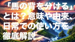 「馬の背を分ける(うまのせをわける)」とは、ごく短い時間の差や、ほんのわずかな違いによって結果が大きく左右されることを表すことわざです。馬が勢いよく駆け抜けると、その背中を分けるほどの一瞬の差で勝敗が決まる様子から、この表現が生まれました。