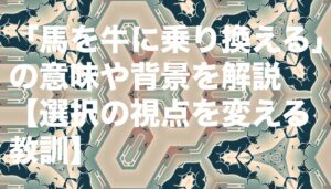 「馬を牛に乗り換える(うまをうしにのりかえる)」とは、物事を急いで進める方法から、あえて遅くても着実で安全な方法へ切り替えることを意味することわざです。馬は速いが扱いが難しく、牛は遅いものの堅実で確実に進むことから、この対比が生まれました。