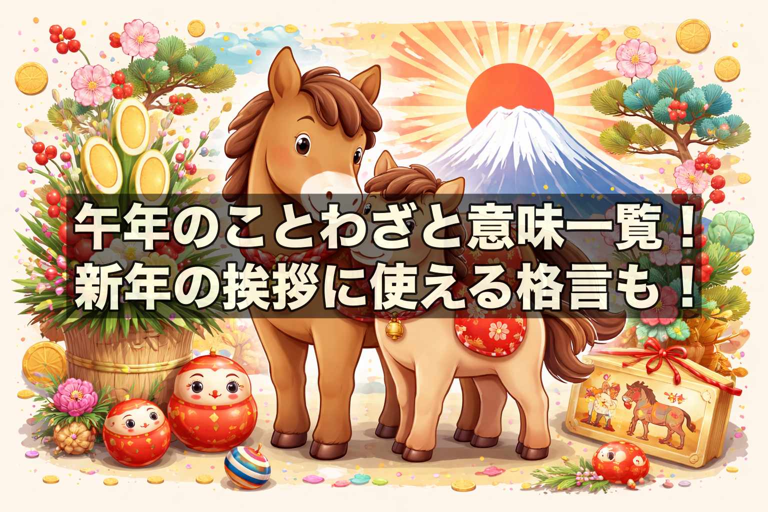 馬は古くから人の暮らしや文化と深く結びつき、日本語の中にも数多くのことわざとして息づいています。とりわけ午年(うま年)にちなんだ諺には、人生の教訓や人間関係の本質、仕事や勝負の世界で役立つ知恵など、現代にも通じる意味が数多く込められています。本記事では、「生き馬の目を抜く」「馬が合う」「人間万事塞翁が馬」など、馬にまつわる代表的なことわざを、あいうえお順に分かりやすく解説しています。言葉の意味や由来、具体的な使い方を知ることで、日常会話や文章表現がより豊かになるはずです。午年にふさわしい縁起や学びを感じながら、馬のことわざの世界をじっくり味わってみてください。